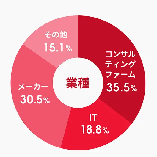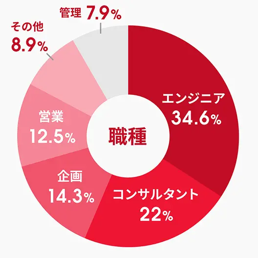 独自のマーケティング手法により、大手コンサルティングファーム、外資系金融、メガベンチャー出身者など、多種多様なバックグラウンドをもつプロフェッショナル人材が登録しています。